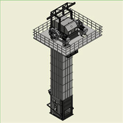 由于水泥企業規(guī)模的不斷擴大和節(jié)能減排的要求,在國內外采用輥壓機用于生料終粉磨和水泥聯合粉磨也越來越多,其單臺的能力也不斷擴大,使得與之相配套的輸送設備-單臺提升機的能力也在提高。由于此處的物料是塊狀的且磨琢性很大,因此只有板鏈提升機能夠適用。但由于輥壓機出輥物料不穩(wěn)定及磨琢性大等特性及生產工藝問題,經常造成提升機堵料、漏料、設備振動、電機頻繁跳停、物料回料量大等現象,嚴重的影響了整個系統的運轉率。我公司集多年板鏈提升機設計和制造經驗,開發(fā)出了適用于此工藝系統的大輸送量的大型板鏈斗式提升機,使得整個工藝系統不因板鏈斗式提升機的故障而影響整個系統的運轉率。